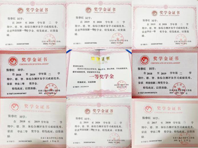 “扎实本领,笃学尚新。”学习方面,她本科阶段连续8次获得学业奖学金,研究生阶段连续2次获研究生一等奖学金,获2次国家励志奖学金,6次科技创新一等奖学金,综测成绩全年级第一名,组织形式多样的学习活动,与班级内、课题组内同学共同进步,所在寝室多次获评校优秀寝室荣誉称号。