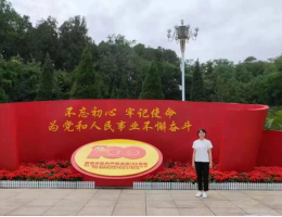 “不论学习还是工作,都要面向实际、深入实践,实践出真知”。2021年7月,恰逢中国共产党建党一百周年,她有幸参加学校组织的“优秀大学生党史学习教育实践研学班”,与老师同学们一起实地参观学习,领会“西柏坡精神”,牢记“两个务必”。作为新时代青年,要坚定理想信念,练就过硬本领,勇于创新创造,矢志艰苦奋斗,锤炼高尚品格,在实现中国梦的生动实践中放飞青春梦想,在为人民利益的不懈奋斗中书写人生华章。通过此次学习,她更加深刻了理解建党精神,感受到深深的红色印记。