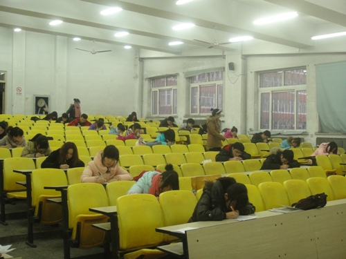 在综合楼一楼举行入党积极分子理论考试。团委副书记哈林丹妮,社团联合会主席郑博等学院重要学生干部监考。09级及10级入党积极分子参与考试。