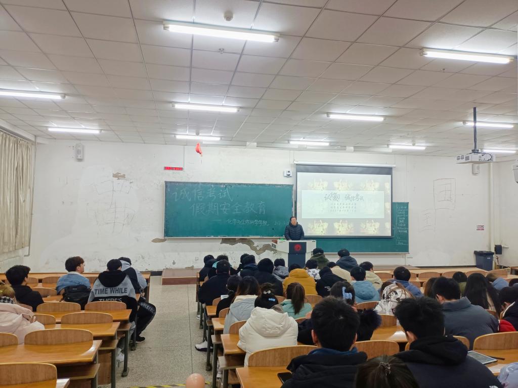 于12月12日在北湖西区西阶101教室开展以“诚信考试和假期安全教育”为主题的年级大会,2020级辅导员张烨老师主持此次大会,全体20级学生参加。