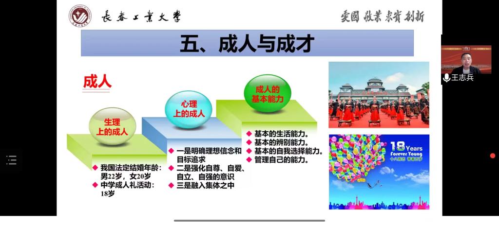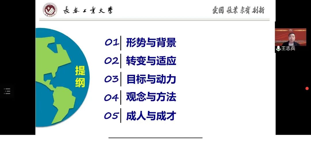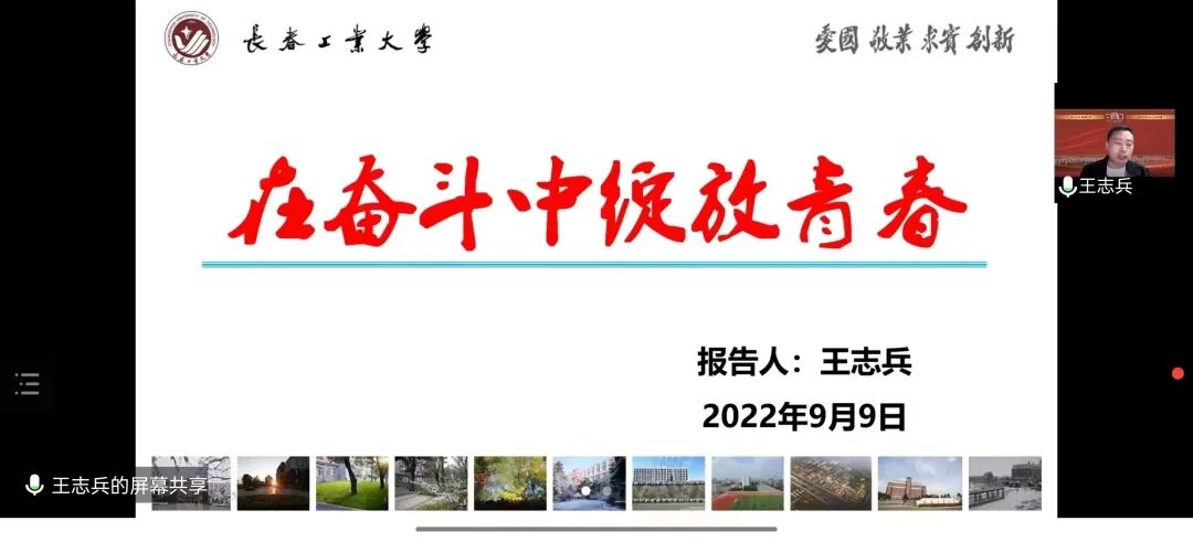 于9月9日下午六点半召开主题为《在奋斗中绽放青春》的线上会议。此次会议由院团委书记、辅导员老师张鹏主持,学院副院长王志兵主讲,2022级全体新生参加。