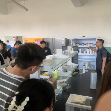 随后实验室安全防范专家刘存讲解了药品分类以及试剂柜的使用方式;提出了药品试剂柜双人双锁、动态台账等管理措施和仪器相关操作规程及使用记录的宝贵建议。最后,与会专家和师生进入实验室进行现场教学。