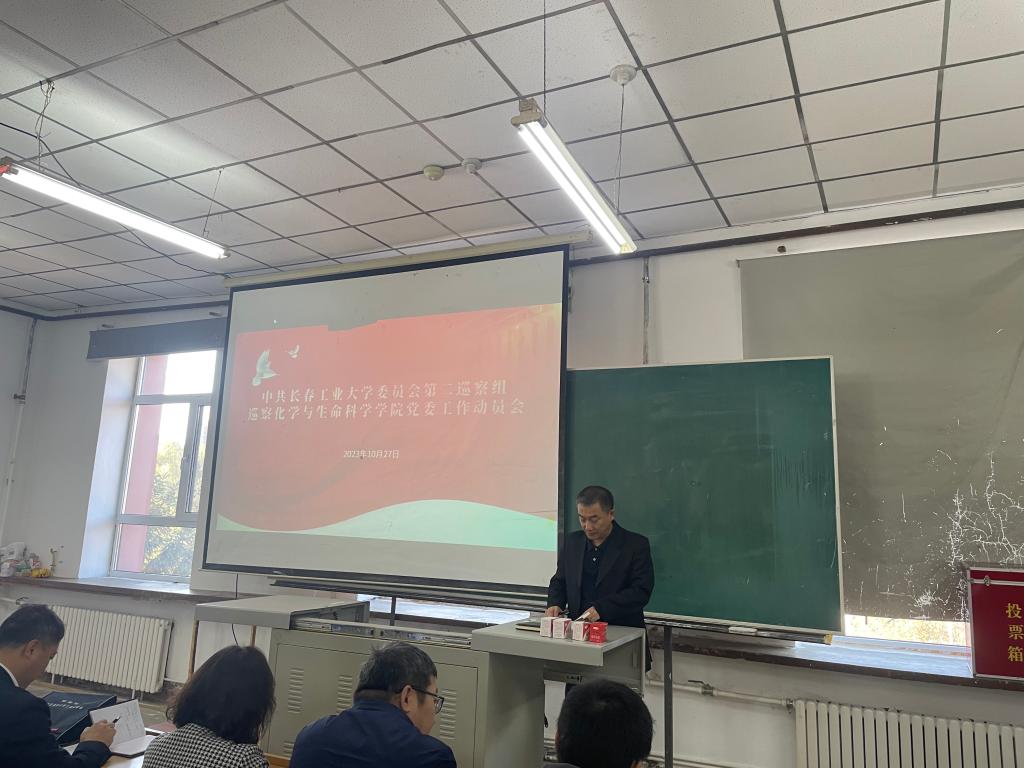 领导班子的见面沟通会,传达了学校党委书记孙长智在中共长春工业大学第四届委员会第一轮巡察动员部署会上的讲话精神,通报了有关工作安排。会上,第二巡察组组长李海峰作了动员讲话,对做好巡察工作提出要求。学院党委书记朱兴国表态发言。