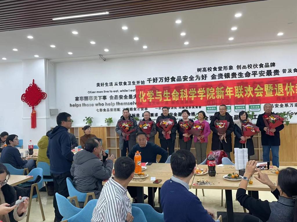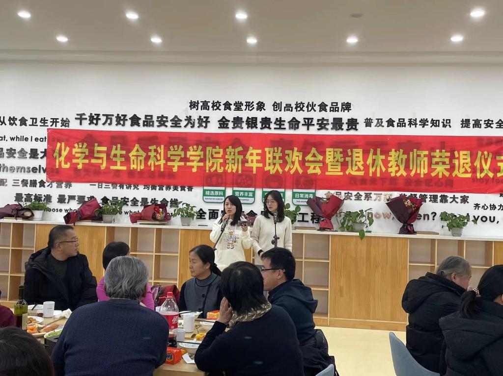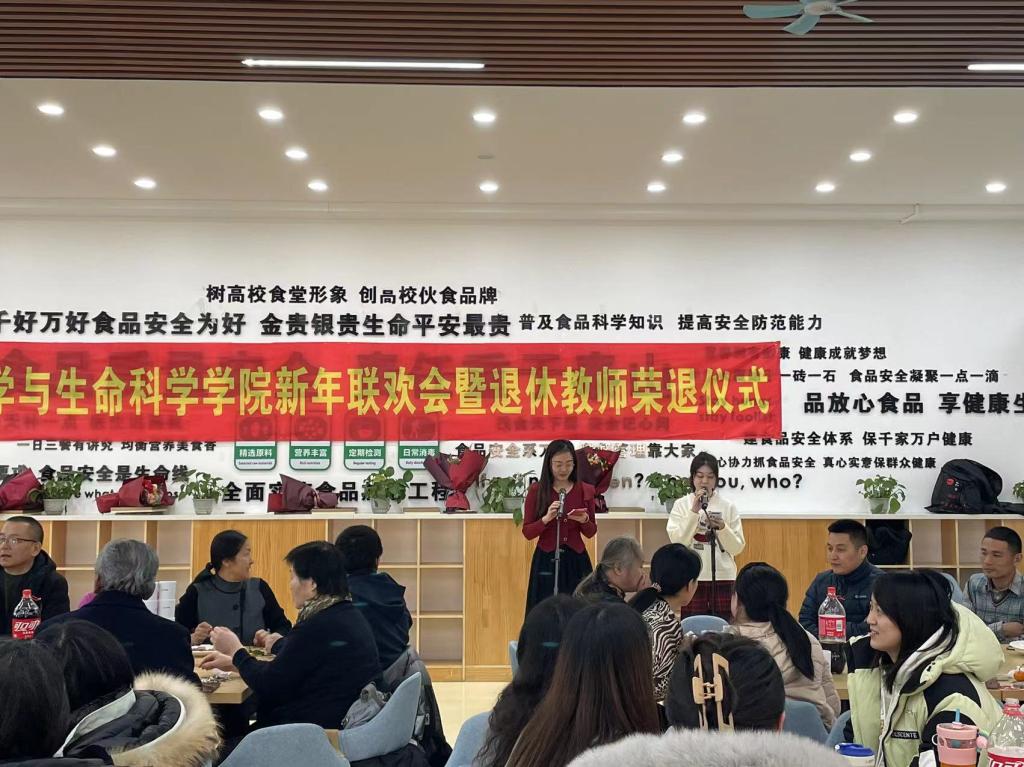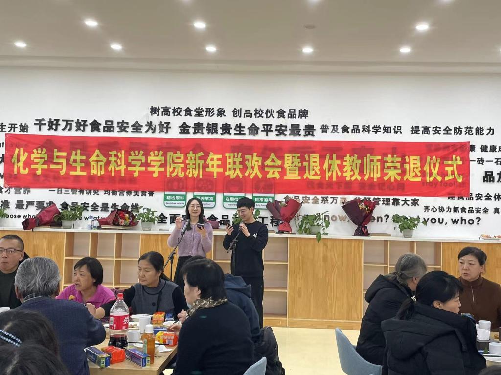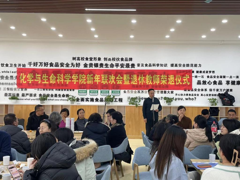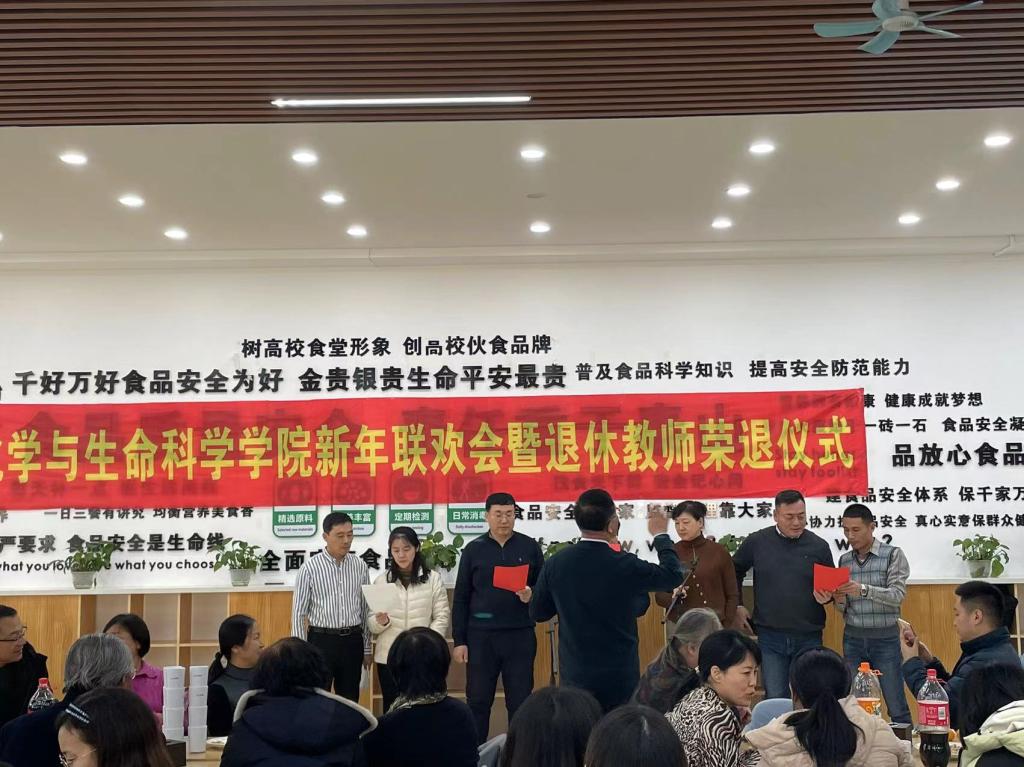 工会在南湖校区教工食堂举办新年联欢会暨退休教师荣退仪式。