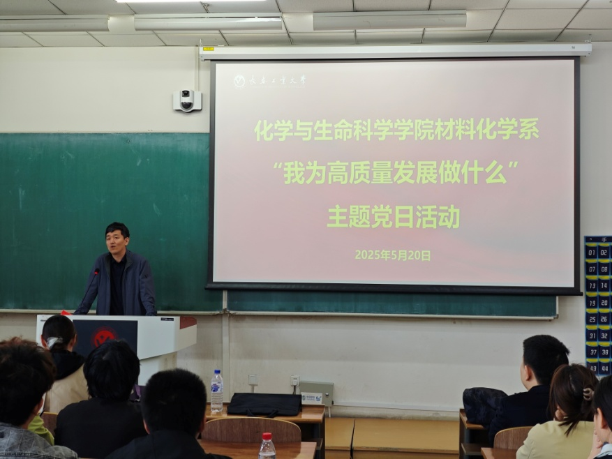 科研方向全景展示:组织教师党员结合自身研究方向,开展“新能源材料设计”“环保高分子材料开发”等专题微讲座,通过案例解析展现材料化学在“双碳”目标中的关键作用。