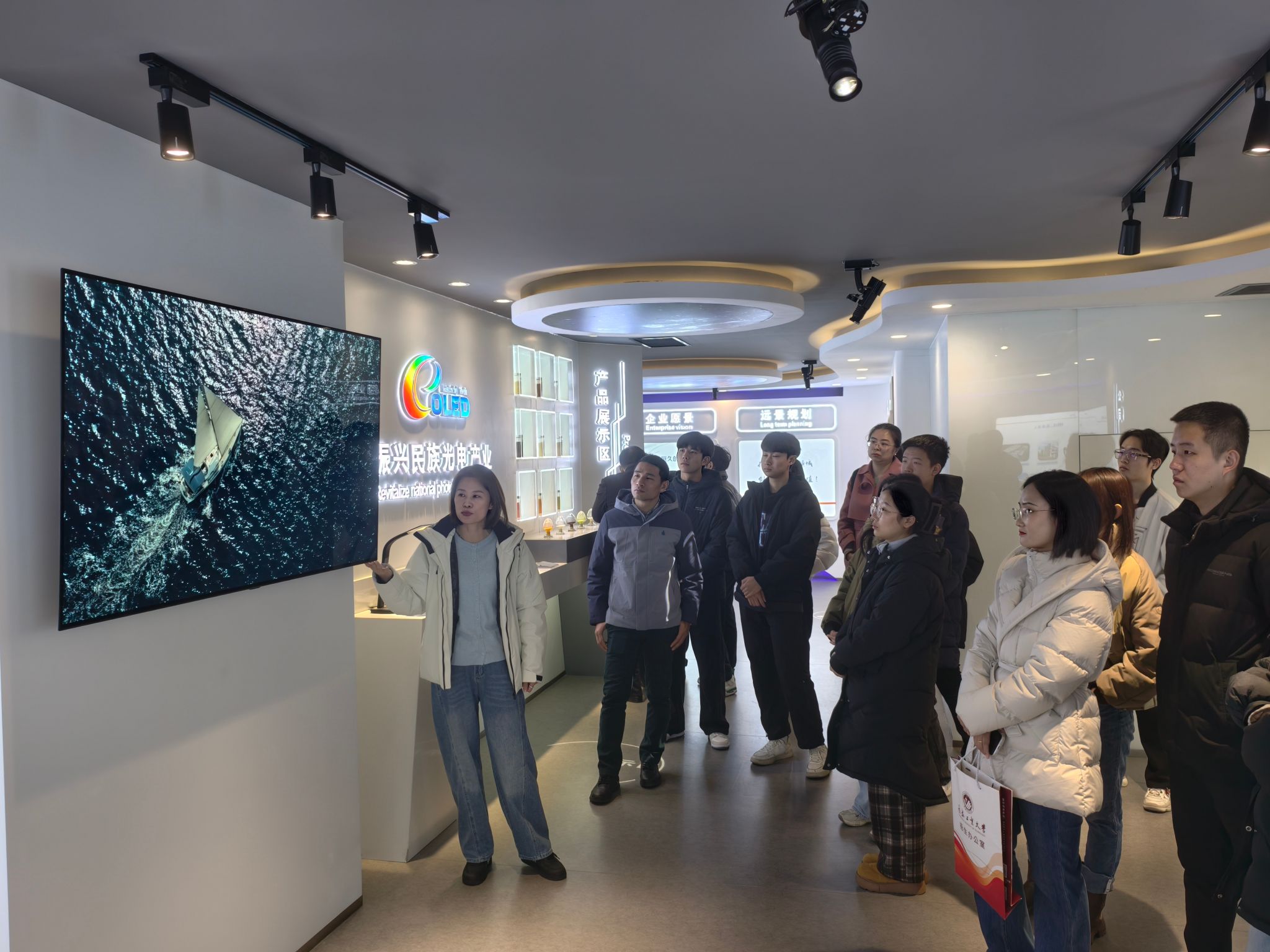 产车间与精密检测流程。高度自动化、智能化的生产线以及严谨的质量控制体系,让师生们直观感受到了高新技术企业的创新实力与对产品质量的极致追求,对OLED材料与器件的生产制造有了更为具体和深刻的认识。