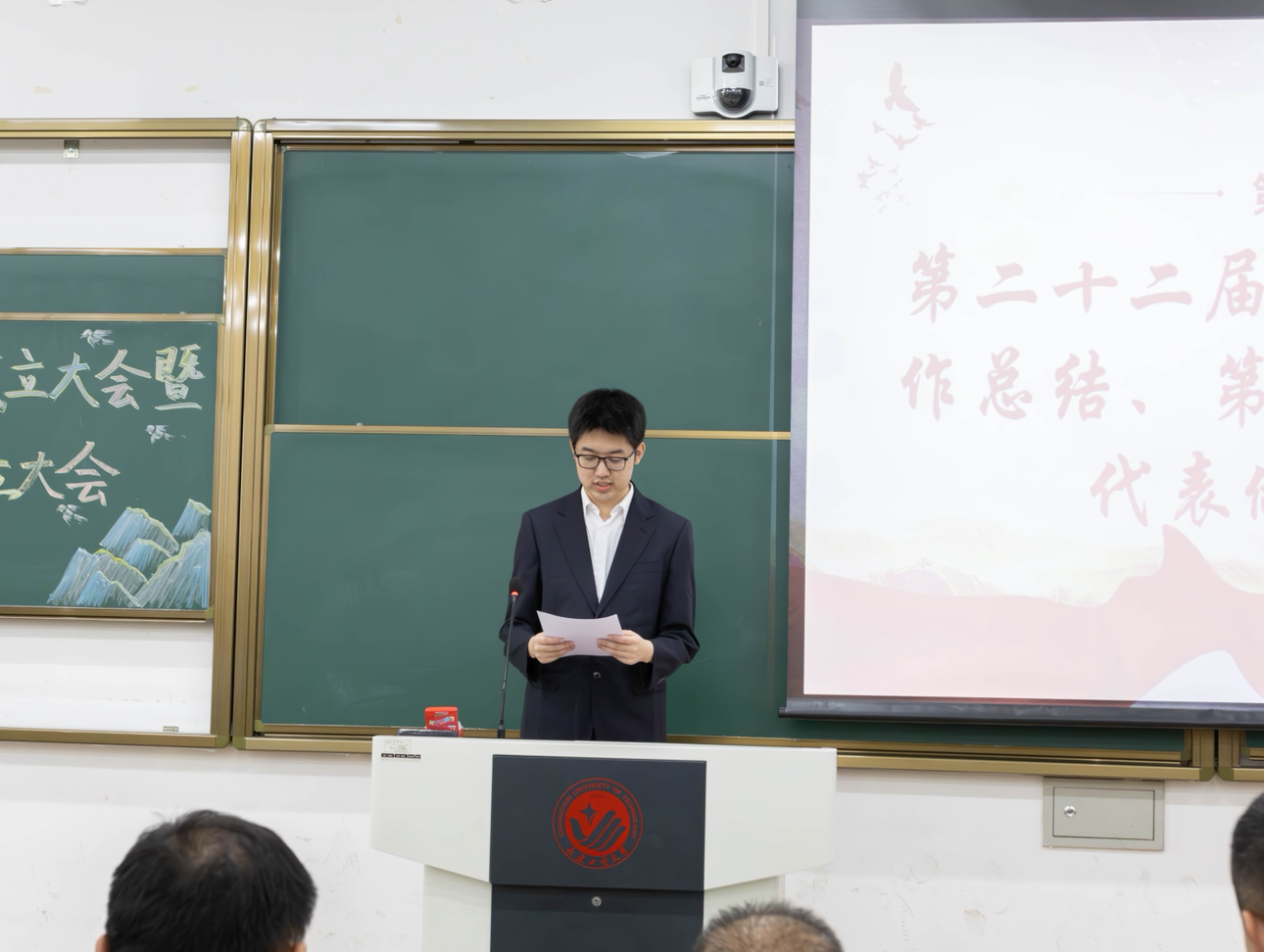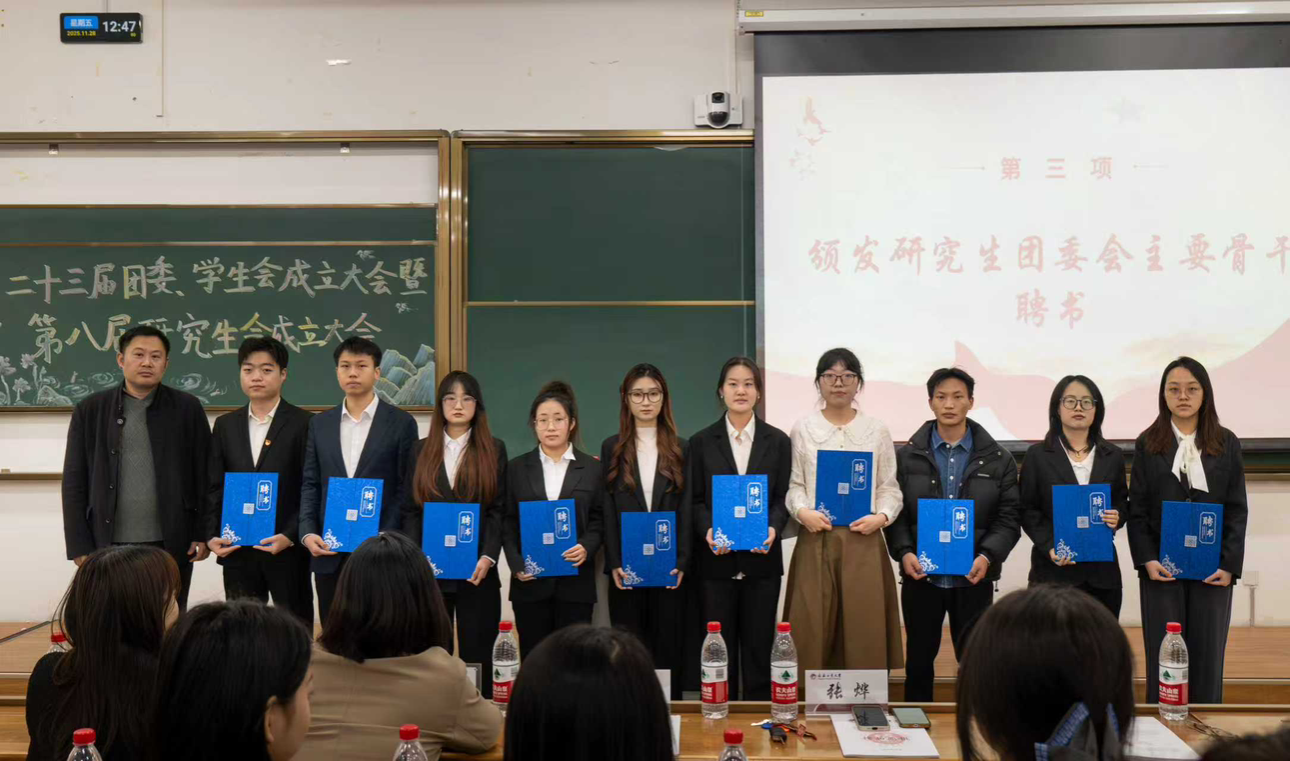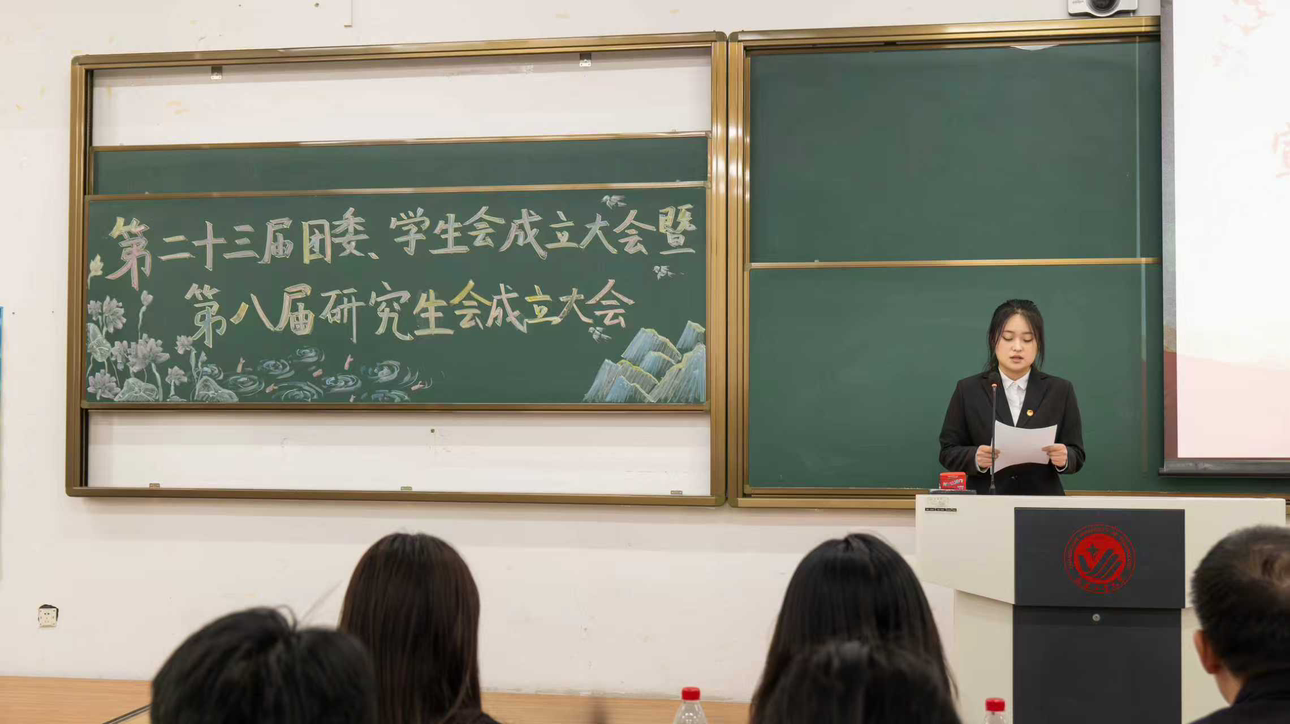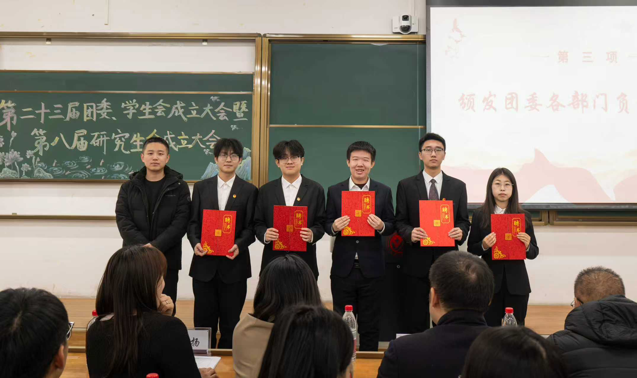 于11月28日在西阶202举行第二十三届团委、学生会成立大会暨第八届研究生会成立大会,本次大会由第二十三届学生会主席团成员董宇晗主持,学院党委副书记郑岩、研究生党支部书记张烨、团委书记李秀绒、辅导员孙铭、刘扬以及兄弟学院学团组织代表,全体新一届团学组织成员参加会议。