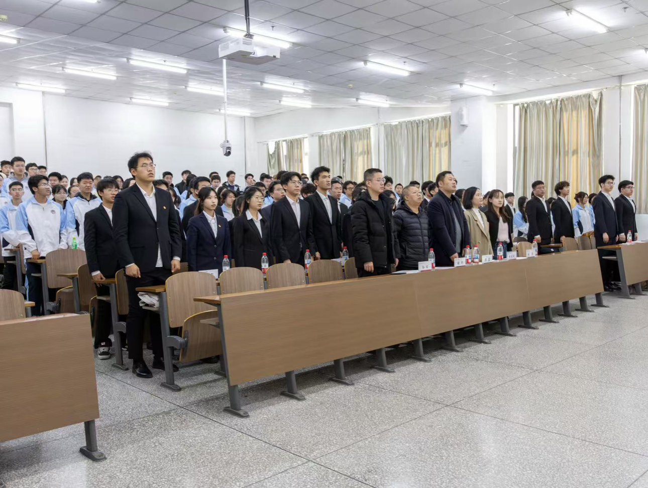 郑岩书记在讲话中对新一届团学组织的成立表示祝贺,并充分肯定了上一届团学组织在服务学院发展、助力学生成长等方面作出的积极贡献。对新加入学团组织的成员做出了几点要求,强调要以身作则,不断提升自身素质和能力,团结带领广大同学共同进步。
