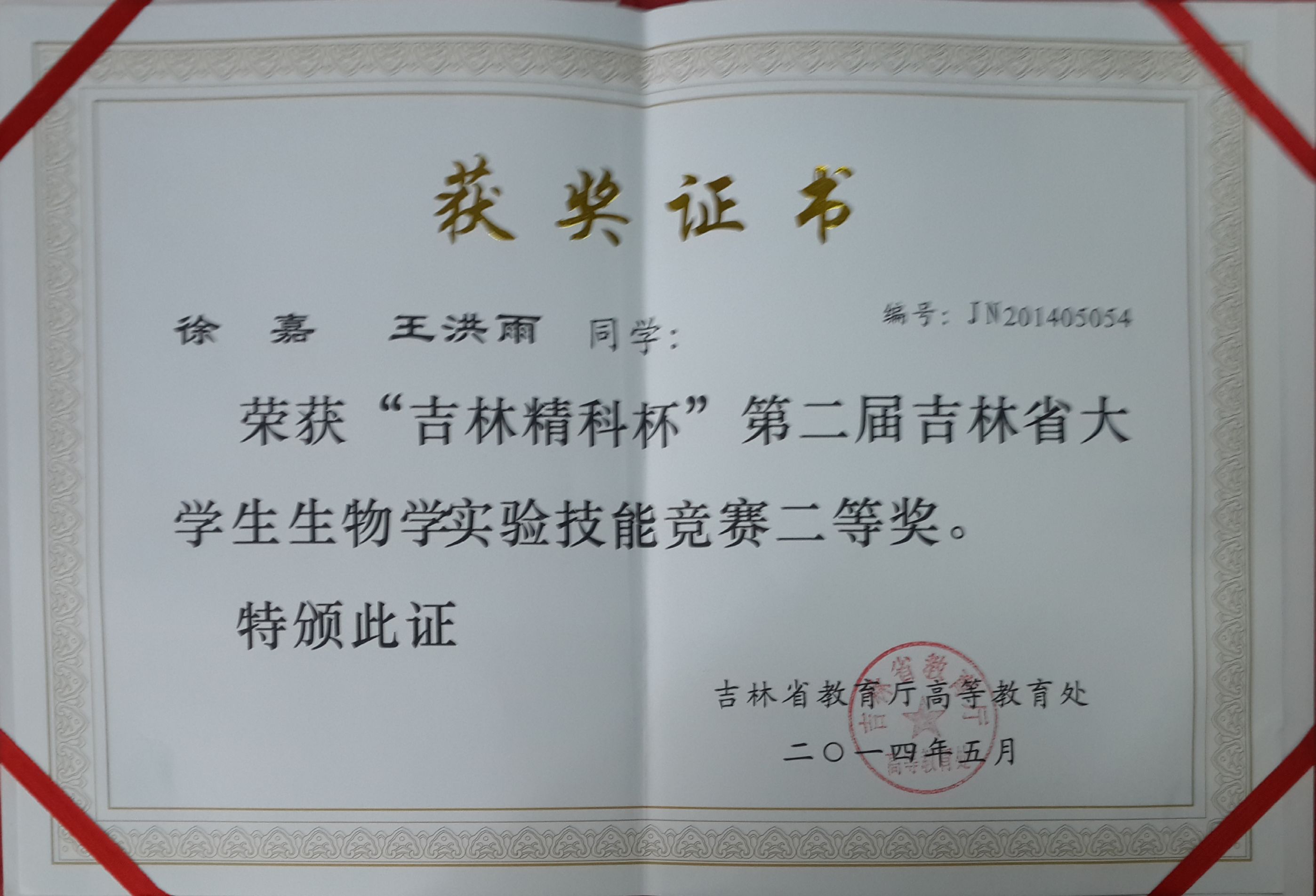 2014年“吉林精科杯”吉林省第二届大学生生物学技能竞赛二等奖(三)