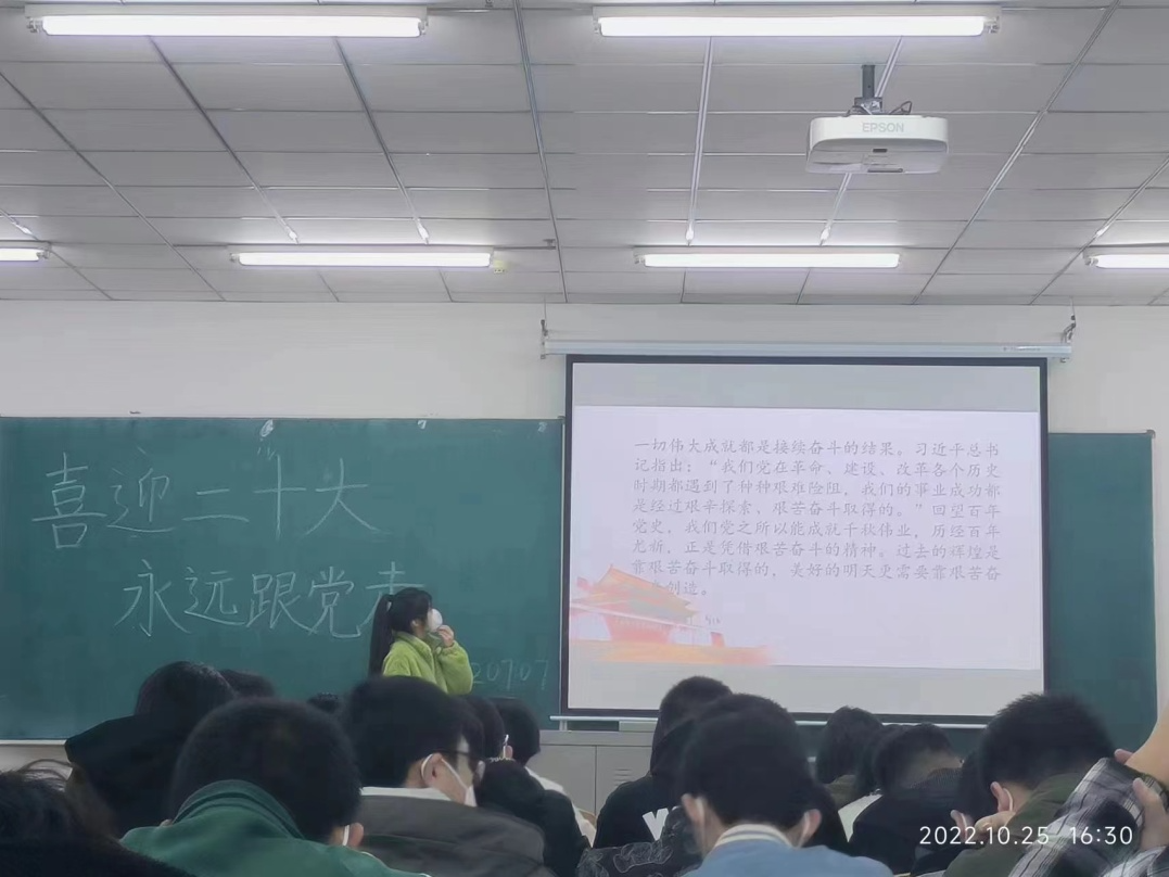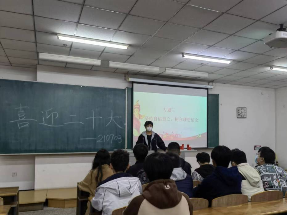 本次会议通过PPT讲解和观看新闻视频等多种形式相结合,向参会同学生动讲述了党的二十大的主要核心内容,深入学习贯彻党的二十大精神实质。会议通过对党的二十大会议要点的介绍,向同学们展示了中国共产党从人民中走来以及中国共产党为人类谋进步,为世界谋大同,并通过提出用党的科学理论武装青年,用党的初心使命感召青年的观点,要求同学们坚持自信自立,树立理想信念,做有理想,敢担当,能吃苦,肯奋斗的新时代好青年。会后同学们纷纷表示要更加深入学习党的二十大要领,树立远大理想,努力提高自身素养,调整好自己的心态,摆正好自己的位置,用所学的知识为实现中华民族伟大复兴贡献青春的力量,让青春在全面建设社会主义现代化国家的火热实践中绽放绚丽之花。