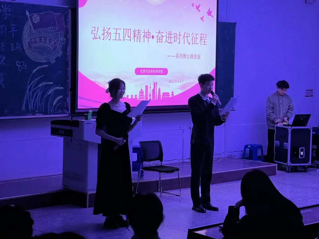 于4月27日在北湖西区西阶102开展了“弘扬五四精神,奋进时代征程”的舞台剧表演大赛。2021级部分学生干部,2022级全体同学参加此次活动。