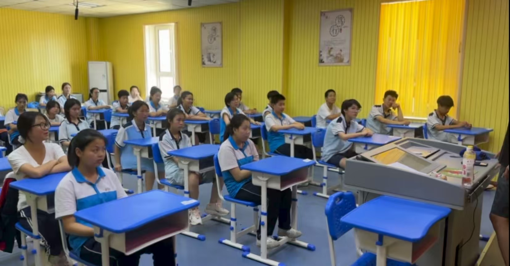 活动当日,江密峰中学的教室里气氛热烈。“星火普语”小队成员们精心准备,首先通过播放生动有趣的普通话推广短视频,吸引了同学们的注意力,激发了大家对说好普通话的兴趣。随后,小队成员带领同学们进行经典诗词诵读,一句句抑扬顿挫、字正腔圆的诵读声在教室中回荡。同学们在诵读中感受着中华诗词的魅力,也在潜移默化中纠正了发音,提升了普通话表达能力。