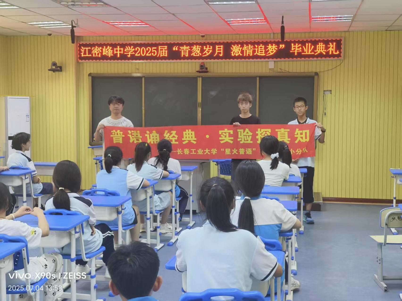 “星火普语”小队走进吉林省吉林市江密峰中学,开展了以“普语诵经典·实验探真知”为主题的推普实践活动。