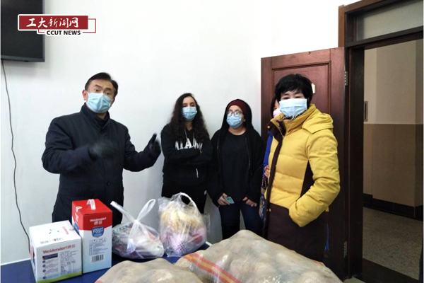 疫情期间,学校领导王忠、副校长王颖看望留学生
