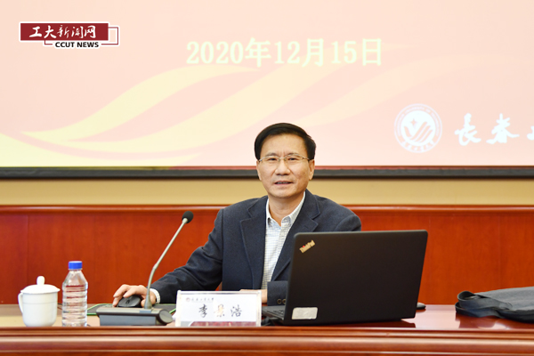讲思政课环节由校长张会轩主持。张会轩指出,李景浩常委走进学校讲授思政课,充分体现了贯彻落实党的十九届五中全会精神的鲜明态度,充分体现了对高等教育发展和青年学生成长的重视厚爱,充分体现了对学校科学做好“十四五”规划的鞭策鼓舞。李景浩常委的讲解主题鲜明,重点突出,深入透彻,既有理论高度,又有理解深度,既有深邃的思想内涵,又有丰富的信息含量,为学校深入学习理解、全面贯彻落实党的十九届五中全会精神提供了有力指导和重要遵循。全校上下要把学习宣传、贯彻落实党的十九届五中全会精神作为当前和今后一个时期首要任务,进一步掀起学习宣传贯彻热潮。要坚持在深入学习贯彻全会精神中,进一步坚定信心、统一思想、凝聚共识,牢牢抓住新发展机遇,贯彻落实新发展理念,加快融入新发展格局,紧密结合吉林经济社会发展所需,深度对接重大战略政策,高标准、高水平、高效率地做好学校“十四五”发展规划。要坚持以习近平新时代中国特色社会主义思想为指导,不折不扣地贯彻落实党的十九届五中全会精神,不忘工业报国初心,牢记立德树人使命,攻坚克难,锐意进取,改革创新,扎实推进学校事业高质量发展,以新担当、新突破、新作为,融入吉林发展,努力为新时代吉林全面振兴全方位振兴奉献工大智慧、展现工大风采、做出工大贡献。