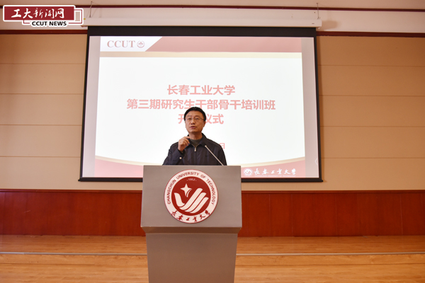 12月5日上午,培训班开班仪式暨专题理论辅导报告在学术报告厅举行。校党委副书记李新出席仪式并讲话。校关工委主任岳学军教授为全体学员作题为《加强理论修养,确立马克思主义世界观》的专题辅导报告。开班仪式由党委研究生工作部部长范琳琳主持。