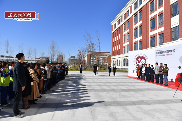 在热烈的掌声中,李占国和李新为长春工业大学美育教研中心揭牌。
