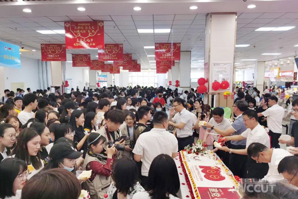 现场人头攒动、热闹非凡,学校领导、相关部门、学院负责人和各餐饮公司经理共同切下象征美食文化节开幕的蛋糕。活动中,各承办餐饮公司的厨师们充分展示着自己的拿手绝活,庆建党百年、绿水青山等主题精美雕刻亮相现场,有深受师生喜欢的可乐鸡块、拔丝白果、橙香薯条、土司山药,有独具创意的孔雀开屏、节节高升、花开富贵、吉祥富贵虾,有地方特色的陕西凉皮、川味麻辣香锅、武汉热干面、粤菜蜂巢水蝉,有样式新颖蓝莓慕斯、海苔饭团、寿司、现烤面包等风味面点,还有异域风情土库曼斯坦的馕、孟加拉国的咖喱鸡腿饭、摩洛哥的枣夹核桃、哈萨克斯坦的风味炒饭,大家围绕着琳琅满目、香飘四溢的特色美食尽情的选取,欢快的气氛弥漫了整个校园。