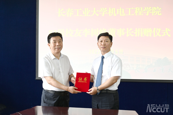 党委书记孙长智为李树峰校友颁发捐赠证书